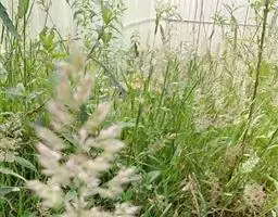 中型种。叶宽披针形,长30-40厘米,宽3-4厘米,叶缘有小锯齿;叶面绿色,叶背白粉状,并有灰色横走的细斑纹;叶基部带紫色;叶先端钝有短突尖,且呈红色,是本种最独特之处。小花蓝色,长约4.5厘米,夏秋季盛开于叶丛中。