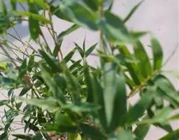凤尾竹 Raeusch. ex Schult. ’Fernleaf’ R. A. Young)是禾本科,簕竹属孝顺竹的变种。植株较高大,杆高可达6米,竿中空,小枝稍下弯,下部挺直,绿色;竿壁稍薄;节处稍隆起,无毛;叶鞘无毛,纵肋稍隆起,背部具脊;叶耳肾形,边缘具波曲状细长繸毛;叶舌圆拱形,叶片线形,上表面无毛,下表面粉绿而密被短柔毛,小穗含小花,中间小花为两性;外稃两侧稍不对称,长圆状披针形,先端急尖;内稃线形,脊上被短纤毛,花药紫色,子房卵球形,羽毛状。成熟颖果未见。原产中国,华东、华南、西南以至台湾、香港均有栽培。凤尾竹喜温暖、湿润和阳光充足的环境,耐寒。宜土层深厚、肥沃、疏松的微酸性壤土。该种观赏价值较高,宜作庭院丛栽,也可作盆景植物。全草或根入药,味淡、微苦,性寒,有清热利湿、凉血止血、消肿解毒功效,可治痢疾、泄泻等多种病症。凤尾