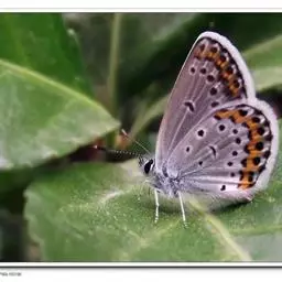 橙灰蝶Lycaena dispar Hauorth,鳞翅目、灰蝶科。这类蝴蝶雌雄异型,雄蝶前翅翅面…