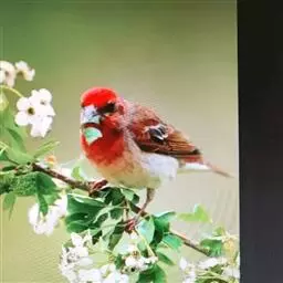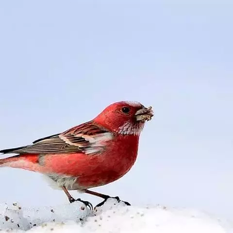 北朱雀,是燕雀科朱雀属鸟类。雄鸟额和头顶前部珠白色具窄的粉红色羽缘,…