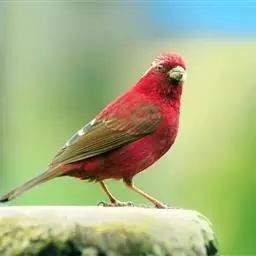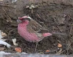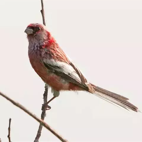 藏朱雀:全长约17-18厘米。雄鸟头部深红色具光辉,喉部暗红色具白色点斑;背部灰白色,各羽具玫瑰红…