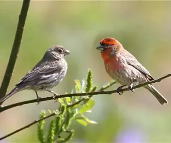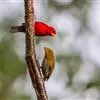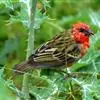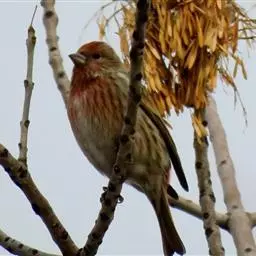 普通朱雀(学名:Carpodacus erythrinus):是鸟纲、雀科的小型鸟类,体长13-16厘米。雄鸟头顶、腰、喉、胸红色或洋红色,背、肩褐色或橄榄褐色,羽缘沾红色,两翅和尾黑褐色,羽缘沾红色。雌鸟上体灰褐或橄榄揭色、具暗色纵纹,下体白色或皮黄白色、亦具黑褐色纵纹。