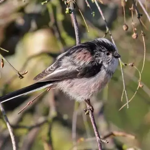 长尾朱雀:体长18厘米,体重16-26克。雄鸟额、颏和眼后为暗红色,…