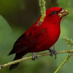 酒红朱雀小型鸟类,体长13~15厘米。雄鸟通体深红色,头部深朱红或棕红色,下背和腰玫瑰红色,…