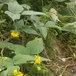 一年生直立或顶端微缠绕草本。高约60cm,被短褐色硬毛。三出复叶,互生;叶柄长9-12cm;小叶3,叶片阔卵形至菱状卵形,侧生小叶偏斜,长6-10cm,宽2.5-7.5cm,先端渐尖,基部圆形、楔形或截形,两面疏被长硬毛;托叶阔卵形,小托叶线形。总状花序腋生,总花梗短于叶柄或近等长;苞片卵形或卵状长椭圆形,有长硬毛;花绿黄色;萼斜钟状,萼齿4,最下面1齿最长,近无毛;旗瓣肾形,翼瓣有渐窄的爪,龙骨瓣的爪截形,其中一片龙骨瓣有角;雄蕊10,二体;子房无柄,密被长硬毛...... 绿豆芽