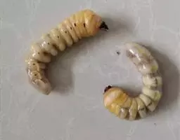 斗米虫为锈色粒肩天牛的幼虫,锈色粒肩天牛主要危害槐树Sophora japonica,…