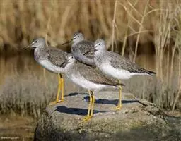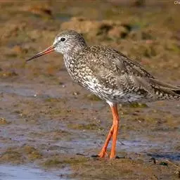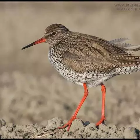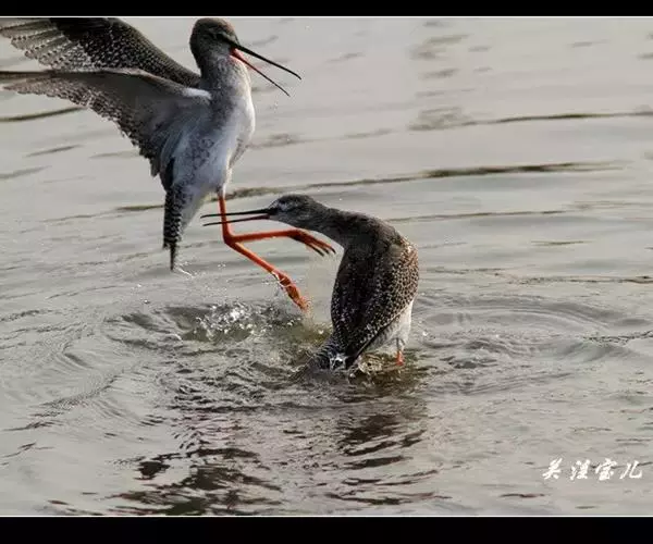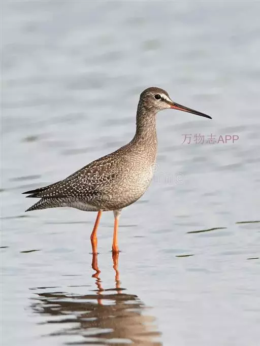 红脚鹬:体长28厘米,上体褐灰,下体白色,胸具褐色纵纹。飞行时腰部白色明显,次级飞羽具明显白色外缘。…