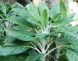 雅丽皇后又名白雪粗肋草、银河粗肋草。植株直立,叶片披针形,革质,锐尖,叶深绿色。中肋两侧具银灰色大…