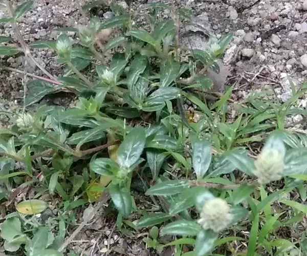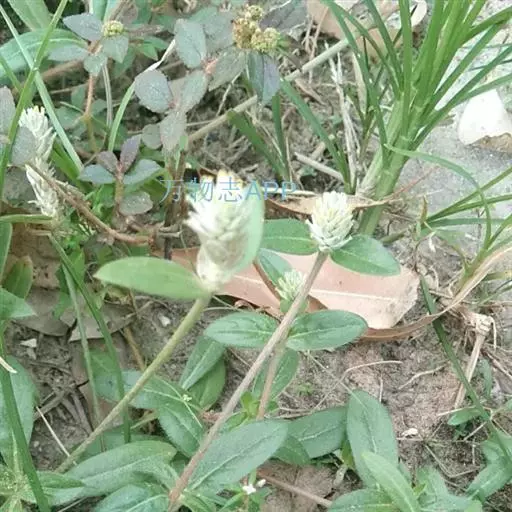 银花苋 Gomphrenacelosioides Mart. 本种和千日红相近,区别为,茎有贴生白色长柔毛,花序银白色,花被片花期后变硬。花果期2—5月。
