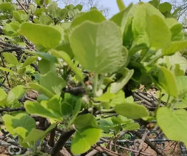 猕猴桃为雌雄异株的大型落叶木质藤本植物。雄株多毛叶小,雄株花也较早出现于雌花;雌株少毛或无毛,花叶均大于雄株。花期为5—6月,果熟期为8—10月。