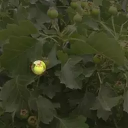 和平1号 和平1号株系从引自湖南的美味猕猴桃嫁接苗砧木萌发而成,1990年选出,植株生长势中等,分枝较密,枝较纤细,叶中等大,较厚,浓绿色。1年生枝呈灰褐色,皮孔较小。萌芽期3月中旬或下旬,花期4月下旬到5月初,果实成熟期10月上中旬,果实在枝条上可留到12月份。落叶期12月中旬,生育期250天左右。
