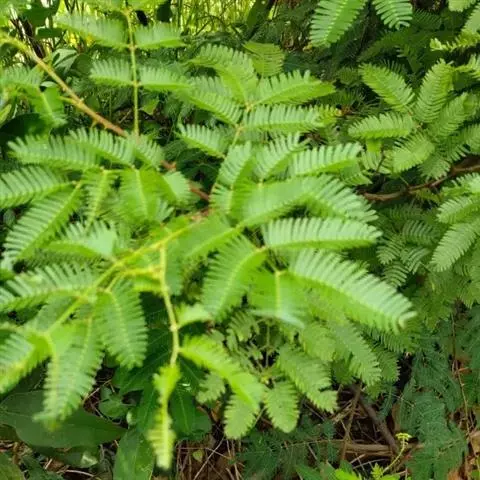 常绿大乔木,树干通直,高可达45m;嫩枝圆柱状或微有棱,被柔毛。托叶锥形,早落。羽片6-20对,上部的通常对生,下部的有时互生;总叶柄基部及叶轴中部以上羽片着生处有腺体;小叶6-26对,无柄,菱状长圆形,长1-1.5cm,宽3-6mm,先端急尖,基部圆钝或近截形;中脉偏于上边缘。
