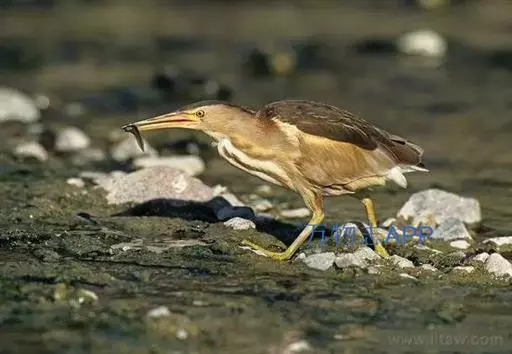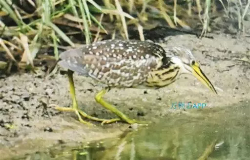 虹膜黄色,嘴、眼先和嘴基也为黄色,嘴峰黑褐色,胫下部、跗蹠和趾黄绿色。