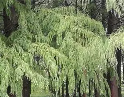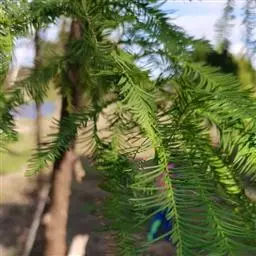 水松 乔木,高8-10米,稀高达25米,生于湿生环境者,树干基部膨大成柱槽状,并且有伸出土面或水面的吸收根,柱槽高达70余厘米,干基直径达60-120,厘米,树干有扭纹;树皮褐色或灰白色而带褐色,纵裂成不规则的长条片;枝条稀疏,大枝近平展,上部枝条斜伸;短枝从二年生枝的顶芽或多年生枝的腋芽伸出,长8-18厘米,冬季脱落;主枝则从多年生及二年生的顶芽伸出,冬季不脱落。