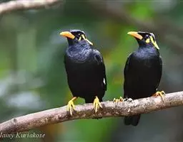 黑冠椋鸟:中等体型的椋鸟,体长21厘米。雄鸟前头为黑色并具金属光泽;头顶、颈项和羽冠亦为黑色;翅及翅上覆羽黑色;尾羽褐色,具白色端斑;上体灰色;下体淡黄褐色。雌鸟形态与雄鸟相似,但羽冠较雄鸟为短。虹膜蓝白或乳黄色;嘴峰铅绿色;跗蹠及爪柠檬黄色。头具黑色羽冠,与其他椋鸟易于区别。主要栖息于开阔落叶阔叶林和灌木林中以及多营巢于树洞中或其他洞穴内。属群鸟共栖。常4-8只结小群活动。鸣声清脆响亮。食物有果实和浆果,偶食花蜜和小型昆虫。分布于印度、中国云南耿马。常见于印度城镇、村庄及铁路沿线。偶见于中国云南西南部和西藏东南部。