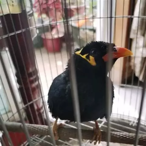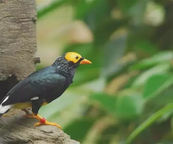 金冠树八哥为椋鸟科树八哥属的鸟类。体长约23厘米,闪辉黑色。特征为具翼斑及颏黄色,脸颊裸露皮肤粉黄色。…