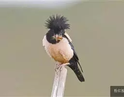 粉红椋鸟:中等体型,成鸟体长19-22厘米,体重60-73克,飞羽、尾羽为亮黑色,雌鸟与雄鸟毛色相似,…