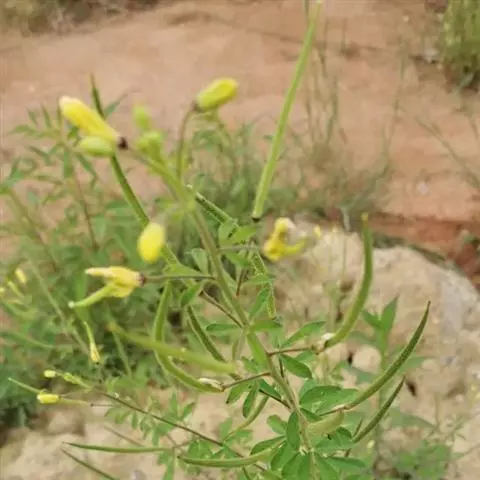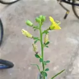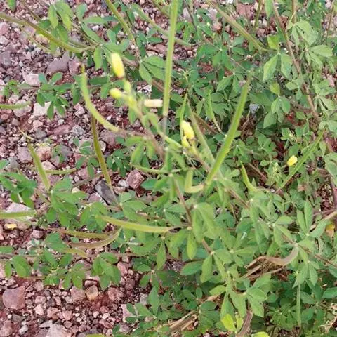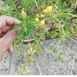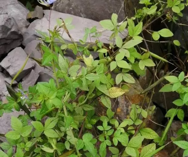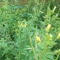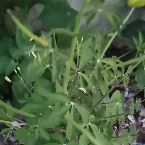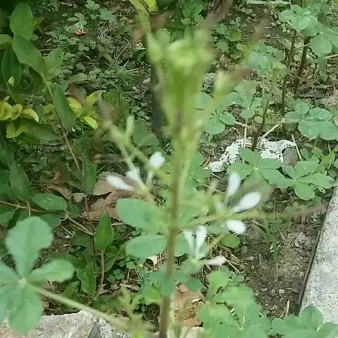 一年生草本。茎直立、开展或平卧,分枝疏散,高达90厘米,无刺,茎、叶柄及叶背脉上疏被无腺疏长柔毛,有时近无毛。叶具3小叶,叶柄长2-20毫米(茎下部的叶未见);小叶椭圆状披针形,有时近斜方状椭圆形,顶端急尖或渐尖、钝形或圆形,基部渐狭或楔形,几无小叶柄,边缘有具纤毛的细齿,中央小叶最大,长1-2.5厘米宽5-12毫米,侧生小叶较小,两侧不对称。花单生于茎上部叶具短柄叶片较小的叶腋内,常2-3花连接着生在2-3节上形成开展有叶而间断的花序;花梗纤细,长1.2-2厘米,果时长约3厘米;萼片4,绿色,分离,狭披针形,顶端尾状渐尖,长约4毫米,背部被短柔毛,边缘有纤毛;花瓣4,新鲜标本上2个中央花瓣中部有黄色横带, 2个侧生花瓣颜色一样,顶端急尖或钝形,有小凸尖头,基部渐狭延成短爪,长约6毫米,宽约2毫米,近倒披针状椭圆形,全缘,两面无毛;花盘不明显,花托长约1毫米,雄蕊6,花丝长5-7毫米,花药长1.5-2毫米;雌蕊柄长1.5-2毫米,果时长4-6毫米;子房线柱形,长5-13毫米,无毛,有些花中子房不育,长仅2-3毫米;花柱短而粗,柱头头状。果线柱形,表面平坦或微呈念珠状,两端变狭,顶端有喙,长3.5-6厘米,中部直径3.5-4.5毫米;果瓣质薄,有纵向近平行脉,常自两侧开裂。种子近圆形,直径1.5-1.8毫米,背部有20-30条横向脊状皱纹,皱纹上有细乳状突起,爪开张,彼此不相联,爪的腹面边缘有一条白色假种皮带。花果期6-9月。 (图片源 )
