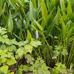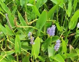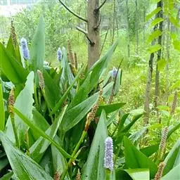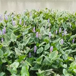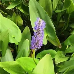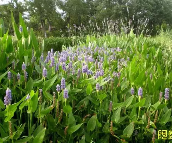 梭鱼草的生长习性为喜温暖湿润、光照充足的环境条件,常栽于浅水池或塘边,其叶色翠绿,花色迷人,花期较长,可用于家庭盆栽、池栽,也可广泛用于园林美化,栽植于河道两侧、池塘四周、人工湿地,与千屈菜、花叶芦竹、水葱、再力花等相间种植,每到花开时节,串串紫花在片片绿叶的映衬下,别有一番情趣。是一种较有前途的水生观赏植物。