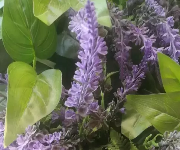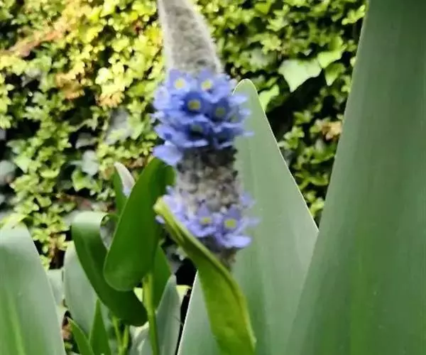 梭鱼草 穗状花序顶生,长5-20厘米,小花密集在200朵以上,蓝紫色带黄斑点,直径约10毫米左右,花被裂片6枚,近圆形,裂片基部连接为筒状。果实初期绿色,成熟后褐色;果皮坚硬,种子椭圆形,直径1-2毫米。花果期5-10月。