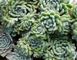 蓝石莲是景天科、拟石莲花属的多肉植物。茎部粗壮,成熟植株茎部木质化。叶片莲座型密集排列,株径不会很大,…