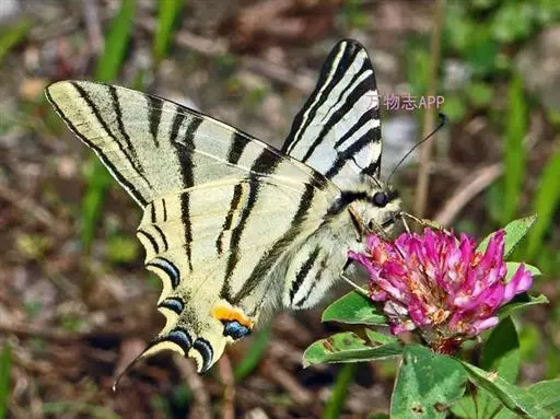 旖凤蝶(Iphiclides podalirius(Linnaeus)别名欧洲杏凤蝶。主要分布于中亚细亚、欧洲、非洲北部;新疆;陇南等地区。物种被《国家保护的有益的或者有重要经济、科学研究价值的陆生野生动物名录》。