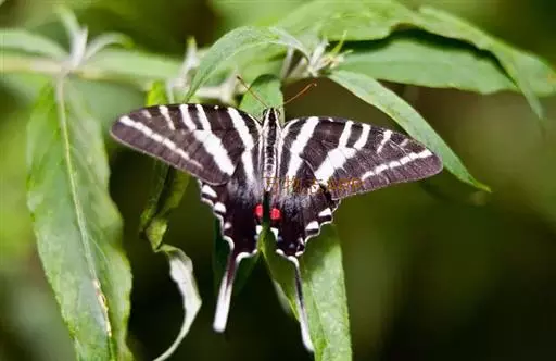 斑凤蝶,Chilasa clytia ,属于凤蝶科,外观拟态成青斑蝶,翅膀具条状与块状的灰白色斑纹…