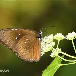 幻紫斑蝶是鳞翅目斑蝶科的一种昆虫。雄蝶翅暗褐色,基部较深,向端部渐浅,蓝色光泽弱,前翅后缘向外凸呈阔弧形,中室端部上和下均有1个白点,近顶端1个不明显,外缘白点列不明显,亚端部有5一6个白点,在CU2室中部有1个短的性标斑;后翅前缘灰白色,外缘和亚外缘白点列不显。翅反面棕色;前翅后缘灰白色有光泽,中室内和外各有1个白点;后翅外缘和亚外缘各有1列白斑,中室内有1个白点,中室端部外附近有白点。