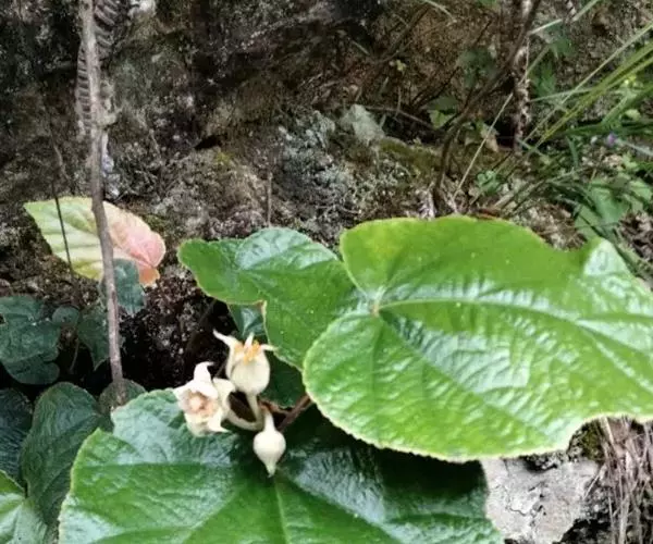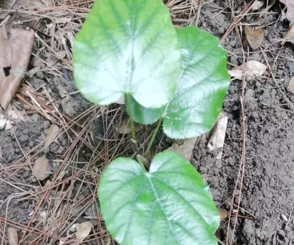 太平莓(图1) 常绿矮小灌木,单叶,革质,宽卵形至长卵形,长8-16厘米,宽5-13厘米,顶端渐尖,基部心形,上面无毛,下面密被灰色绒毛,基部具掌状5出脉,侧脉2-3对,下面叶脉突起,棕褐色,边缘不明显浅裂,有不整齐而具突尖头的锐锯齿;叶柄长4-8厘米,幼时具柔毛,老时脱落,疏生小皮刺;托叶大,棕色,叶状,长圆形,长达2.5厘米,具柔毛,近顶端较宽并缺刻状条裂,裂片披针形。