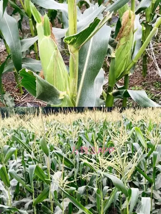 (4)甜质型:又称甜玉米,植株矮小,果穗小。胚乳中含有较多的糖分及水分,成熟时因水分蒸散而种子皱缩,多为角质胚乳,坚硬呈半透明状,多做蔬菜或制罐头。
