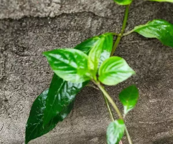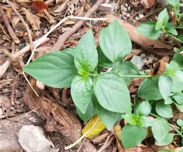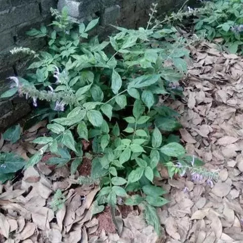 全草长可达80cm。根须状,淡黄色。茎多分枝,折曲状,具棱,节膨大呈膝状,下面节处常匍匐具根。叶对生,暗绿色或灰绿色,多皱缩,完整叶片卵形或卵状披针形,纸质,长2-7cm,宽1-4cm,先端急尖或渐尖,基部楔形,下延,全缘,两面无毛或稍被毛,以上表面叶脉处较多;叶柄长,上面有短柔毛。有的带花,由数个头状花序组成的聚伞花序生于叶腋,叶状苞片一大一小,倒卵状椭圆形;花二唇形。蒴果卵形,开裂者胎座升起。种子有小疣点。气微,味淡微甘。