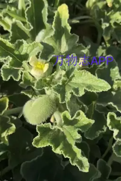 喷瓜 蔓生草本;根伸长,粗壮。茎粗糙,有短刚毛,长约1.5米。叶柄稍粗壮,长5-15厘米,与茎一样,密被短刚毛,具纵纹;单叶互生,叶片卵状长圆形或戟形,缘具齿或波状,长8-20厘米,宽6-15厘米,边缘波状或多少分裂,具粗齿,上面苍绿色,有粗糙的疣点和白色的短刚毛,背面灰白色,密被白色短柔毛,叶脉在叶背隆起,密被白色短刚毛;顶端稍钝,基部弯缺半圆形,宽1-2厘米,深0.5-1厘米,有时近截平。雄花生于总状花序,花序梗稍粗壮,密生黄褐色的长柔毛和短刚毛,花梗短,纤细,长1-3厘米,基部具一小的苞片;花萼裂片披针形,长5-6毫米,宽1.5-2毫米,外面密被柔毛和短刚毛;花冠黄色,展开时径达3厘米,裂片卵状长圆形,顶端有小尖头,3脉;雄蕊花丝长3毫米,基部有长柔毛。果实苍绿色,长圆形或卵状长圆形,长4-5厘米,宽1.5-2.5厘米,粗糙,有黄褐色短刚毛,两端钝,成熟后极膨胀,自果梗脱落后基部开一洞,由瓜瓤收缩将种子和果液同时喷射而出。种子褐色或近黑色,长约4毫米。