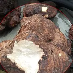 根茎呈不规则团块状,直径2-3cm。表面黑褐色,节上有多数根痕或残存细根和芽;上面茎基疏生短硬腺毛。质脆,易折断,断面红棕色,显粉性。气微,味淡。