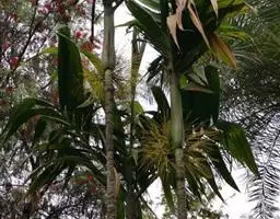 丛生灌木,高2-3m,茎干直立圆柱形,有节,直径1.5-3cm,茎纤细如手指,不分枝,有叶节,上部被叶鞘,但分解成稍松散的马尾状淡黑色粗糙而硬的网状纤维。