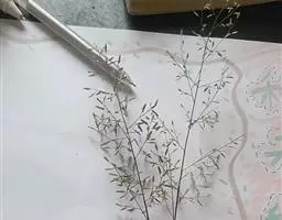 画眉草,一年生草本,或斜上升,高20-60cm,通常具4节,光滑。叶鞘稍压扁,鞘口常具长柔毛;叶舌退化为1圈纤毛;叶片线形,长6-20cm,宽2-3mm,扁平或内卷,背面光滑;表面粗糙。圆锥花序较开展,长15-25cm,分枝腋间具长柔毛,小穗成熟后,暗绿色或带紫黑色,长3-10mm,有4-14朵小花;颖披针形,先端钝或第2颖稍尖,第1颖长约1mm,常无脉,第2颖长1-1.5mm,有1脉;外稃侧脉不明显,第1外稃广卵形,长1.5-2mm,先端尖,具3脉,内稃作弓形弯曲,长约1.5mm,脊上有纤毛,迟落或宿存;雄蕊3,花药长约0.3mm。颖果长圆形,长约0.8mm。花、果期8-11月。
