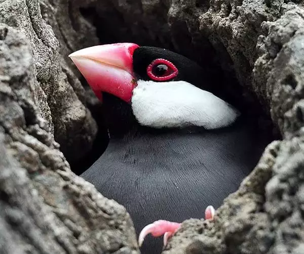 禾雀(学名:Lonchura oryzivora)是文鸟科、禾雀属小型鸟类,体长13-16厘米。嘴粗厚呈圆锥状、粉红色,脚强健亦为粉红色,头黑色,头侧有一大白斑,从颊一直延伸到耳羽,在黑色的头部极为醒目。上体以及下喉和胸灰色,上喉和颏黑色,其余下体葡萄灰色。尾黑色,尾下覆羽白色。