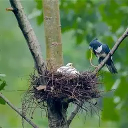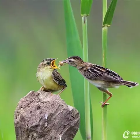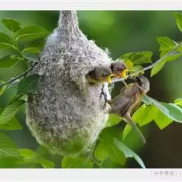 禾雀等晚成鸟的雏鸟发育,可以分为绒羽期、针羽期、羽片期、齐羽期四个时期。绒羽期雏鸟,眼未睁,全身除少量绒羽外,光秃秃无毛,头只能勉强抬起。这段时间应喂以菜泥、熟蛋黄为主的浆状饲料,用喂食小匙轻碰雏嘴。当雏张嘴乞食时,快而稳地把料填入。每天喂6-8次,每次喂到雏鸟不再张嘴为止。