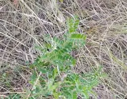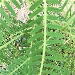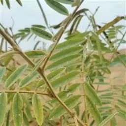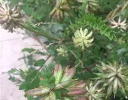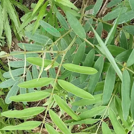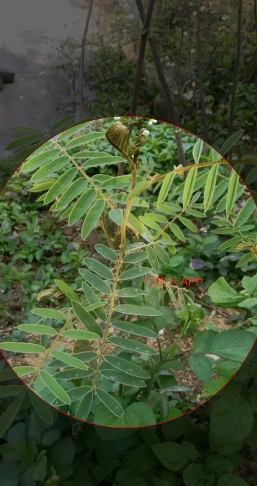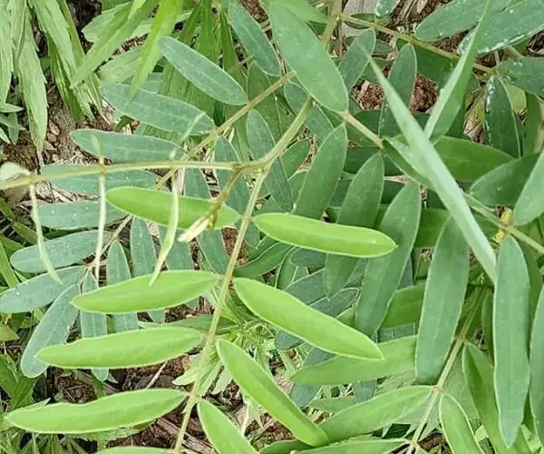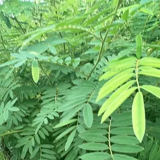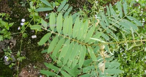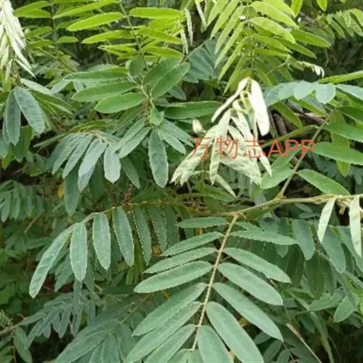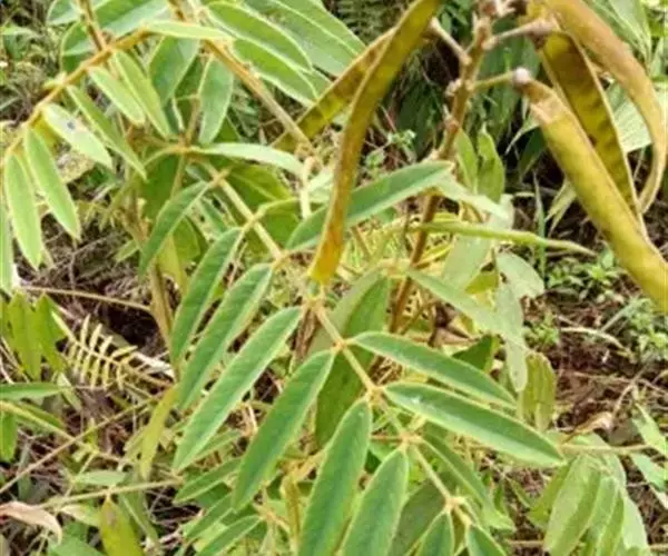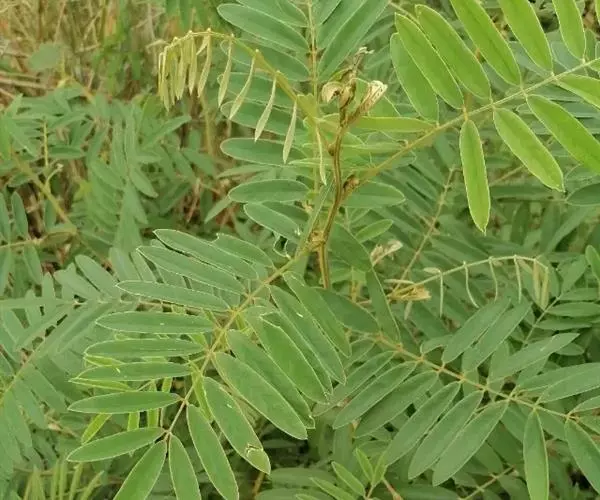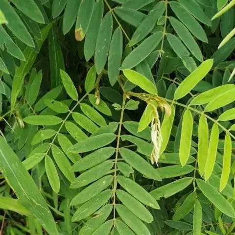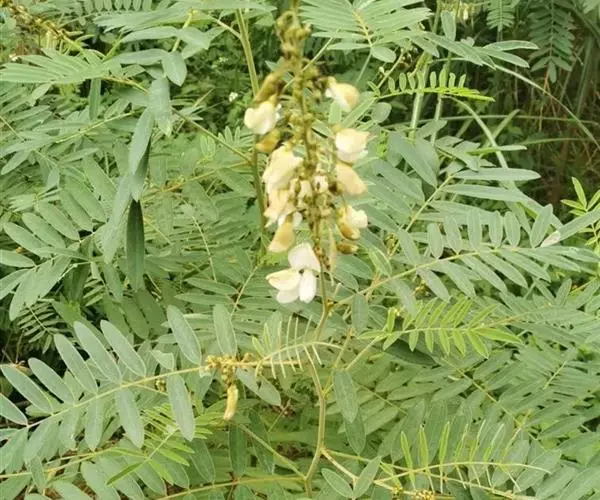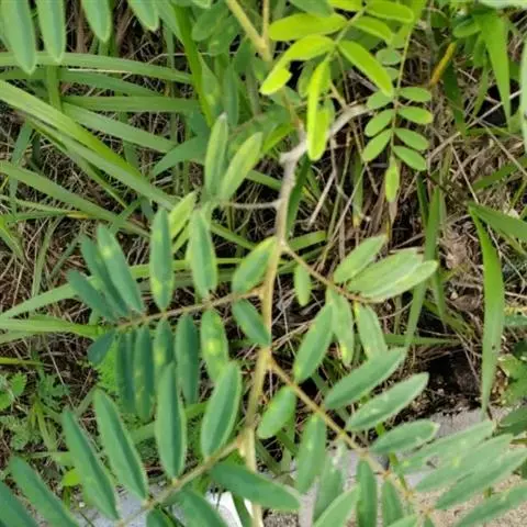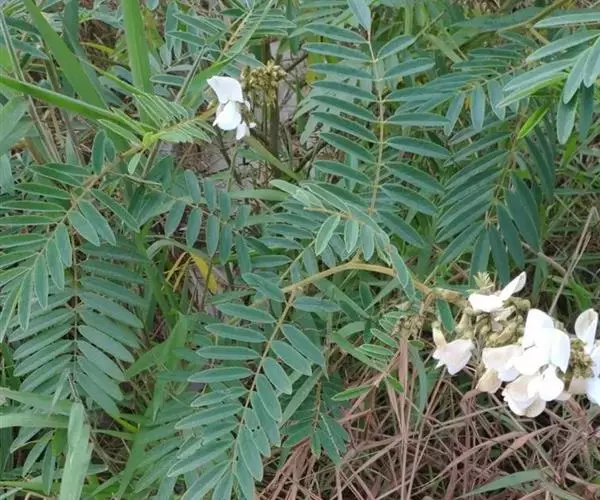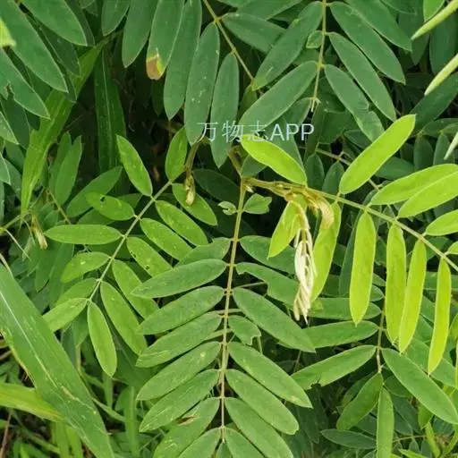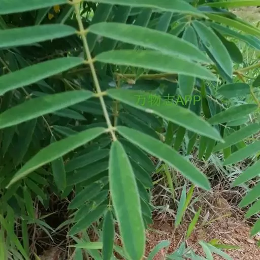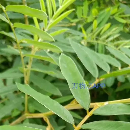 灌木状草本,高1-3.5米。茎木质化,具纵棱,与叶轴同被灰白色茸毛,毛长约0.75-1毫米。羽状复叶长15-25厘米;叶柄长1-3厘米,叶轴上面有沟;托叶三角状钻形,刚毛状直立,长4-7毫米,被毛,宿存;小叶8-12对,长圆形,长3-6厘米,宽6-1.4厘米,先端具细凸尖,上面无毛,下面密被平伏绢毛,侧脉30-50对,纤细,稍隆起;小叶柄长3-4毫米,密被茸毛。