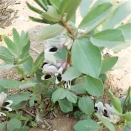总状花序顶生或侧生,长15-20厘米,疏散多花,下部腋生的花序较短;苞片钻形,长约3毫米,脱落;花长约2厘米;花梗长约1厘米;花萼阔钟状,长宽各约5毫米,密被茸毛,萼齿近等长,三角形,圆头,长约1毫米;花冠色、淡黄色或淡红色,旗瓣外面密被白色绢毛,翼瓣和龙骨瓣无毛;子房密被绒毛,花柱扁平,直角上弯,内侧有稀疏柔毛,柱头点状,胚珠多数。荚果直,线形,密被褐色长短混杂细绒毛,长8-10厘米,宽7.5-8.5毫米,顶端截尖,喙直,长约1厘米,有种子10-15粒;种子榄绿色,具花斑,平滑,椭圆形,长约5毫米,宽约3.5毫米,厚约2毫米,种脐稍偏,种阜环形,明显。花期10-11月,果期12月。