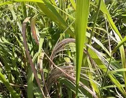 一年生草本。秆较粗壮,直立,高3-5米,横径2-5厘米,基部节上具支撑根。叶鞘无毛或稍有白粉;叶舌硬膜质,先端圆,边缘有纤毛;叶片线形至线状披针形,长40-70厘米,宽3-8厘米,先端渐尖,基部圆或微呈耳形,表面暗绿色,背面淡绿色或有白粉,两面无毛,边缘软骨质,具微细小刺毛,中脉较宽,白色。