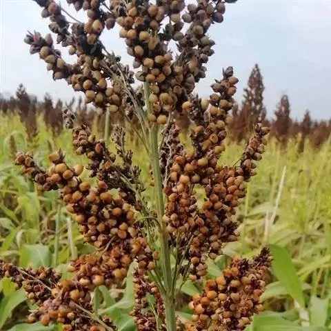 高粱(Sorghum bicolor (L.) Moench)禾本科一年生草本植物。秆较粗壮,直立,基部节上具支撑根。叶鞘无毛或稍有白粉;叶舌硬膜质,先端圆,边缘有纤毛。圆锥花序疏松,主轴裸露,总梗直立或微弯曲;雄蕊3枚,花药长约3毫米;子房倒卵形;花柱分离,柱头帚状。颖果两面平凸,淡红色至红棕色,熟时宽2.5-3毫米,顶端微外露。有柄小穗的柄长约2.5毫米,小穗线形至披针形,花果期6-9月。