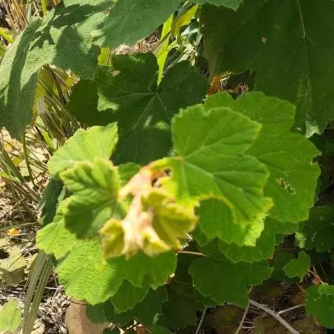 ②炭疽病。叶片上病斑近圆形,中央淡褐色,边缘紫红色,以后生有小黑点,后期病斑穿孔。发病初期,喷洒0.5 :1 :150 倍波尔多液或80%代森锌可湿性粉剂500倍液,或80%炭疽福美可湿性粉剂800~1000倍液,每隔7~10天喷1次,交替施用。