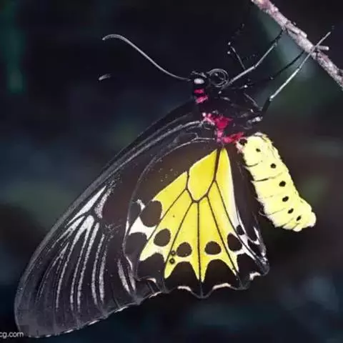 金裳凤蝶在蝴蝶界算是成虫界的“长寿冠军”。普通蝴蝶,一般寿命10-15天,最短的仅活一周,而金裳凤蝶,至少能活一个月以上。