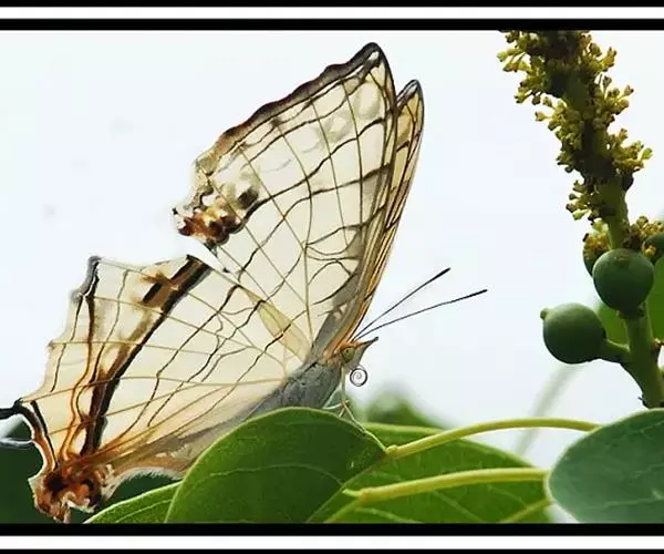 如网丝蛱蝶的中、英文俗名,略呈透明白色或残旧黄色的翅膀上布满褐色的条纹,与翅脉相交,如地图的经纬线般,又如纵横交织的丝网般。后翅波浪状,有短尾突。爱在树林里高高的树顶和石面停留,静止时翅膀平展,飞行缓慢。 展翅约 45 至 55 毫米; 三月至十二月可见。翅白色或淡黄色,脉纹褐色清晰,整个翅上的线条和斑纹均为黑褐与赭色或黄色等混合而形成,两翅不少条纹从前翅前缘横穿后翅,直达臂缘,与翅脉相交形成网纹。前翅顶角尖锐,后角有一个赭色杂以绿黄色似花束的斑,后翅臂角有2个似前翅后角的花纹。幼虫食用榕属植物。