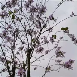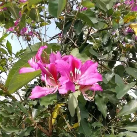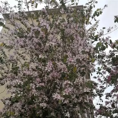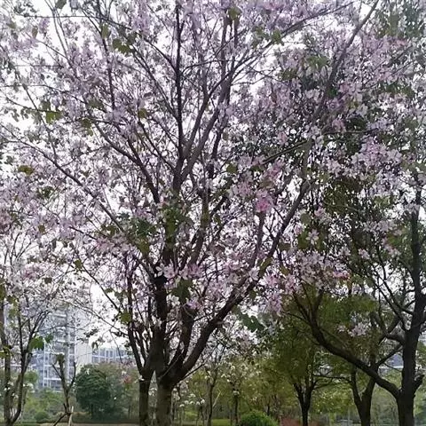 洋紫荆:落叶乔木;树皮暗褐色,近光滑;幼嫩部分常被灰色短柔毛;枝广展,硬而稍呈之字曲折,无毛。叶近…