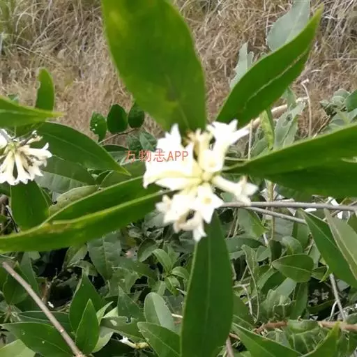 常绿直立灌木,高0.5-1.2米,二歧状或伞房分枝;枝深紫色或紫红色,通常无毛,有时幼嫩时具粗绒毛;腋芽近圆形或椭圆形,鳞片卵形,顶端圆形,稀钝形,除边缘具淡白色流苏状缘毛外无毛,通常褐色。叶互生,有时簇生于枝顶,叶片革质,椭圆形或披针形,长6-12厘米,宽1.8-3厘米,两端渐尖,基部下延于叶柄,边缘全缘,微反卷,上面深绿色,具光泽,干燥后有时起皱纹,下面淡绿色,中脉纤细,上面通常凹陷,下面微隆起,侧脉6-7对,纤细,上面微凸起,稀微凹下,下面不甚明显;叶柄两侧翅状,长6-8毫米,褐色。花白色,有时淡黄白色,9-12朵簇生于枝顶,呈头状花序,花序下具苞片;苞片褐绿色易早落,长圆状披针形,外面大的苞片长达 15毫米,宽4毫米,内面小的苞片长8毫米,两面无毛,顶端尾尖或渐尖,边缘具短的白色流苏状缘毛;几无花序梗,花梗长1-2毫米,密被淡黄绿色粗绒毛;花萼筒圆筒状,外面下部密被淡黄绿色丝状绒毛,上部较稀疏,长10-14毫米,裂片4,卵状三角形或卵状长圆形,长约5毫米,顶端钝尖,无毛;雄蕊8,2轮,分别着生于花萼筒上部及中部,花丝长约2毫米,花药长的长圆形,长约2.1毫米;花盘短杯状,长0.7毫米,边缘全缘或微波状,外面无毛;子房无毛,倒圆锥状圆柱形,长2.2毫米,顶端渐尖,窄成短的花柱,柱头头状,直径0.7毫米。果实红色,广椭圆形或卵状椭圆形,长10毫米,直径5-6毫米。花期11至次年2月,果期4-5月。 [2-3]