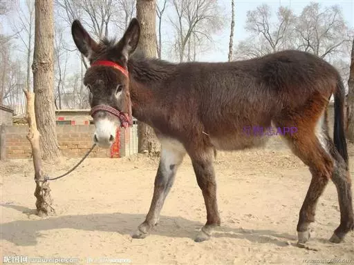 毛驴的形象似马,多为灰褐色,不威武雄壮,它的头大耳长,胸部稍窄,四肢瘦弱,躯干较短,因而体高和身长大体相等,呈正方型。颈项皮薄,蹄小坚实,体质健壮,抵抗能力很强。毛驴很结实,耐粗放,不易生病,并有性情温驯,刻苦耐劳、听从使役等优点。