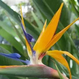 鹤望兰,别名天堂鸟,为鹤望兰科鹤望兰属的一种多年生草本植物;无木质树干;花序生于与叶柄近等长或稍短的花序梗上,佛焰苞1;花较小,萼片橙黄色,长7.5-10厘米,箭头状花瓣基部具耳状裂片,暗蓝色;花期在冬季。该物种原产非洲南部,在中国南方大城市的公园、花圃有栽培,北方则为温室栽培。性喜温暖湿润、阳光充足的气候,适宜生长的温度为25℃左右,耐干旱、较耐寒、不耐水湿,要求疏松肥沃、排水良好,以土层深厚的沙壤土为宜。因花形美丽似鹤,花开时犹如仙鹤翘首远望,花朵寿命亦长,故中文名为鹤望兰。鹤望兰素有“鲜切花之王”的美誉,是一种名贵的观赏花卉,深受广大消费者喜爱。同时,鹤望兰也宜大盆栽植,布置在公园、客厅、会议室、展厅候机室等处。鹤望兰是美国洛杉矶市的官方花卉象征。