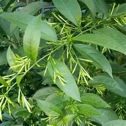夜香树是茄科、夜香树属直立或近攀援状灌木。枝条细长而下垂。叶有短柄,叶片矩圆状卵形或矩圆状披针形,…