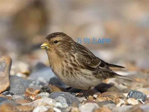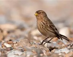 黄嘴朱顶雀(学名:Linaria flavirostris):为燕雀科金翅雀属的鸟类。体重10-18克,体长112-162毫米。是一种体型小的褐色具纵纹的雀鸟。腰粉红或近白。与其他朱顶雀的区别在头顶无红色点斑,体羽色深而多褐色,尾较长,叫声也不同。个体大小和羽色近似白腰朱顶雀,但额上和胸无红色,而腰部呈玫瑰红色;下体有暗色斑纹;雌鸟似雄鸟但腰暗,初级飞羽少白色边缘。与赤胸朱顶雀的区别在嘴黄且小,头褐色较浓,颈背及上背多纵纹,翼上及尾基部的白色较少。虹膜深褐色,嘴黄色;脚近黑色。